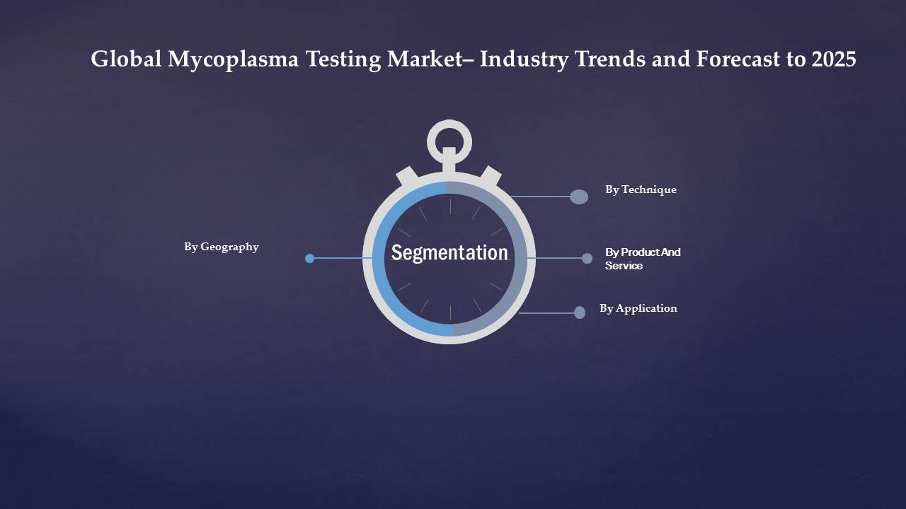 · The global mycoplasma testing market is segmented on basis of technique, product & service, application, end users and geography.